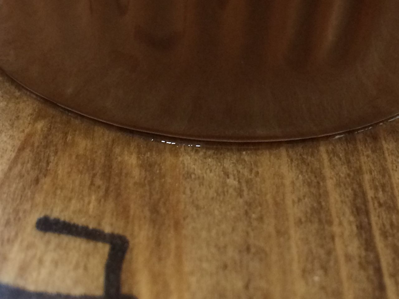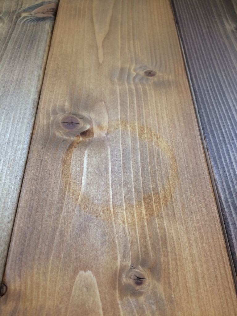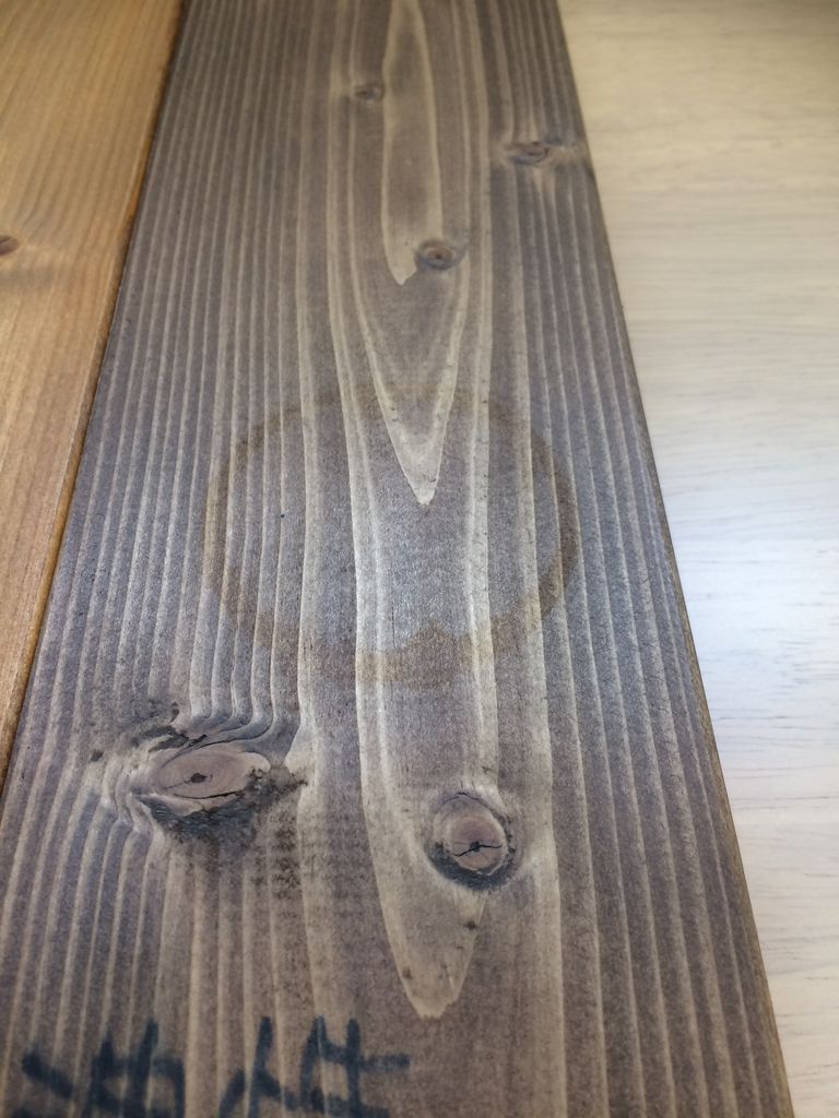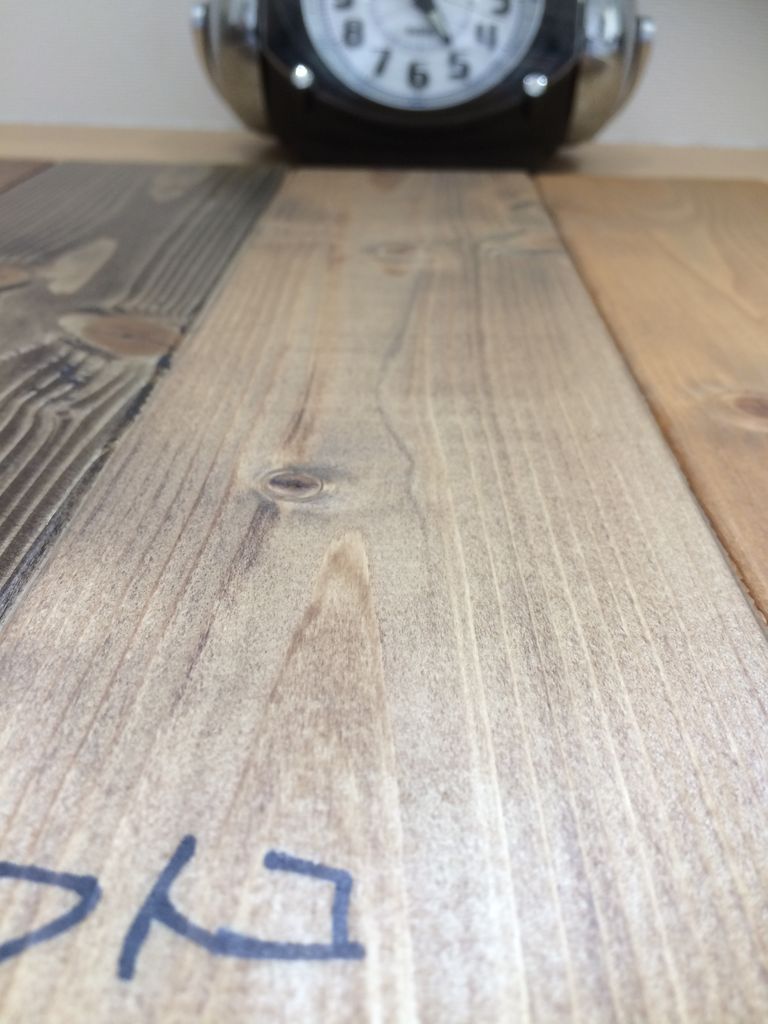 ●オイルステインの板は水気をぬぐった直後、輪ジミが出来ています。水が染みているようです。