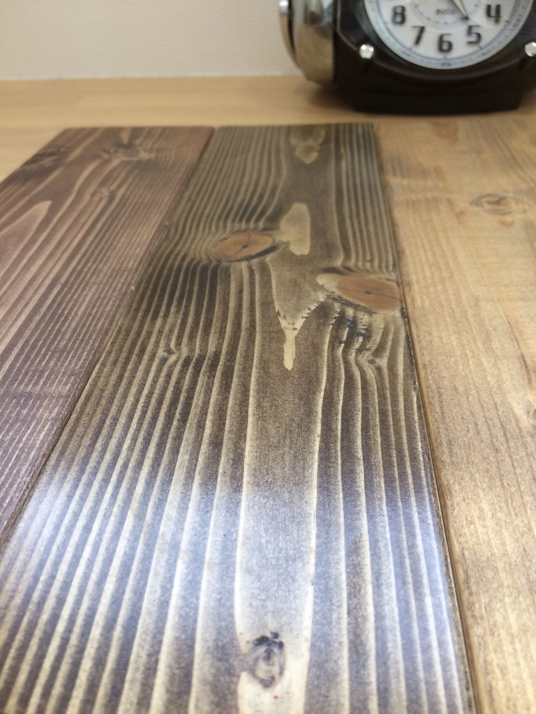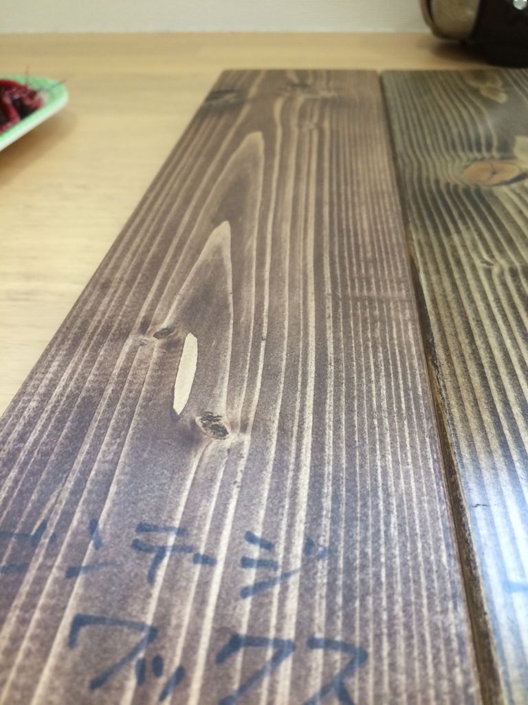 ブライワックスは撥水性がものすごく高いので、ちょっと水がかかるくらいならすぐに拭くことで問題なさそうですが、濡れたまま時間がかかると(実験では5分で)染みになってしまいました。従ってダイニングテーブルなど濡れたカップなどを置く可能性がある場所への使用は不向きそうです。そういう場所にはビンテージワックスのほうが向いているのかもしれせん。ワトコオイルや水性ステインも跡は消えましたが撥水性が低いので水以外の液体で濡れるとマズそうです。ニスなどの上塗りが必要になるでしょう。