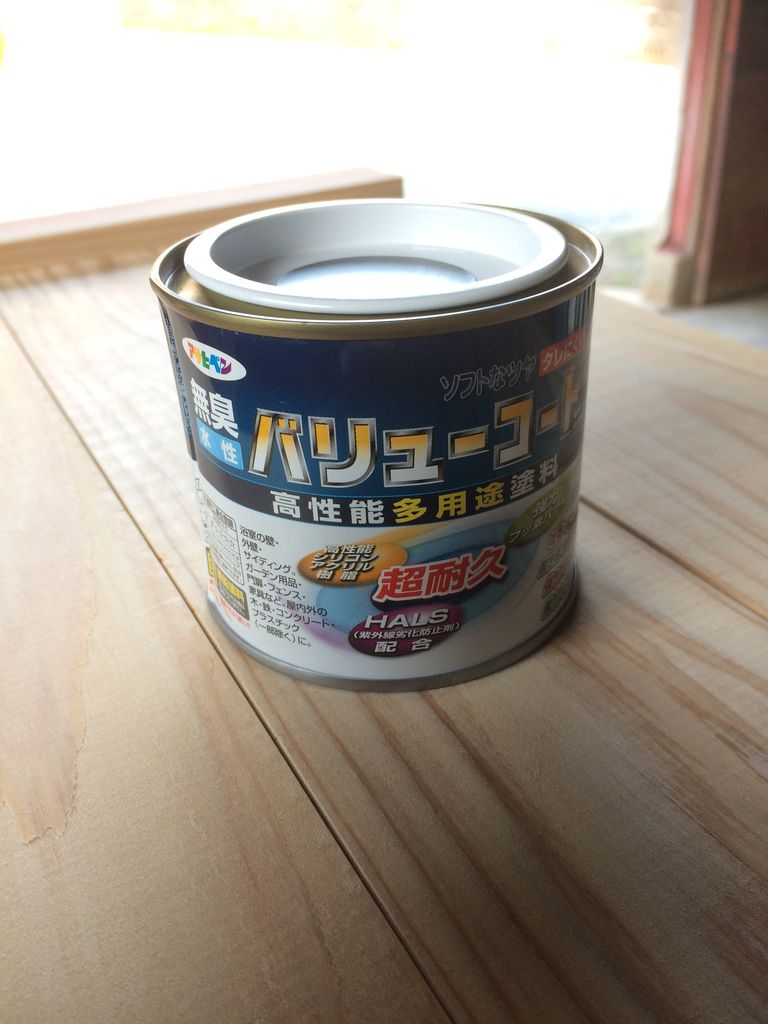 そんな言い方するとメーカーさんから怒られそうですが、今回使ったのはアサヒペンさんの水性ペンキで、ホームセンターの定番売り場にドーンとスペースをとってカラーバリエーションも豊富なこのシリーズです。缶の大小あって小なら600円代で買えたと思いますのでお手頃なんじゃないでしょうか。