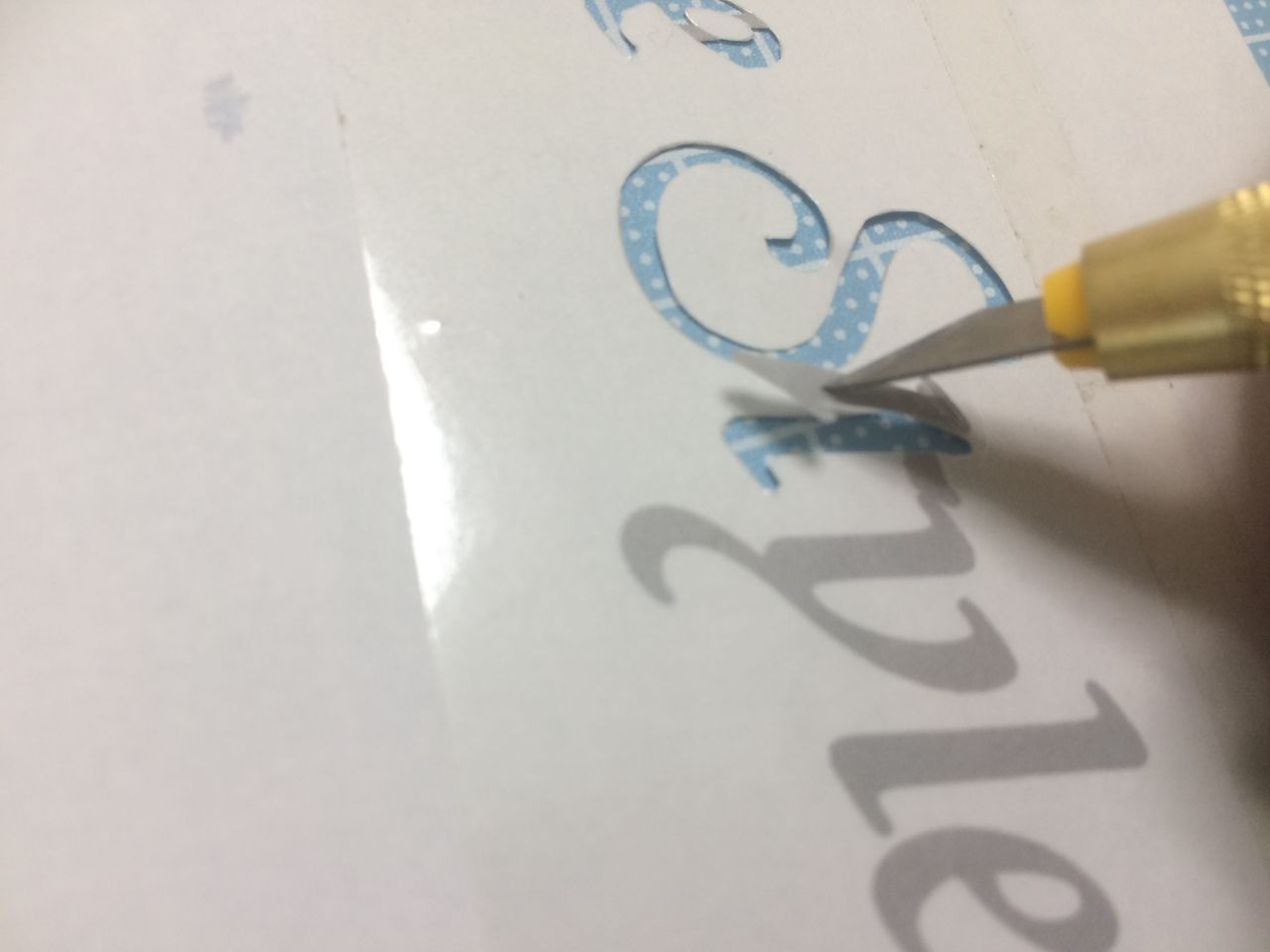 切り抜きで自分で思ったコツとしては、カッターを鉛筆のように持ち、切り抜く文字(紙)側を回転させ、いつも同じような向きに刃を滑らす(いつも手側に引く感じで切る)のが安定してキレイに切れるという事かな。