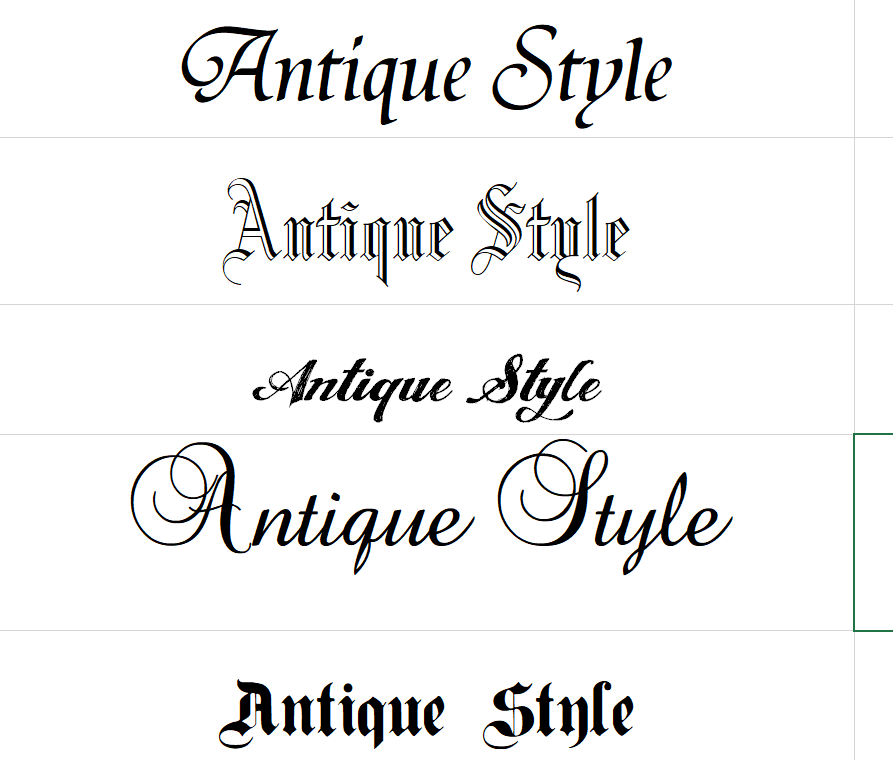 見つけたフォントの数々でエクセルシートに「アンティークスタイル」と書いてみました。