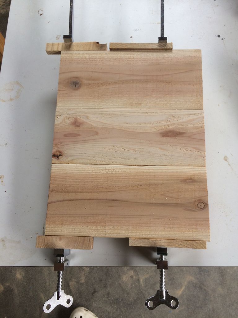 板の圧着接合には「はたがね」という長いクランプのような道具が便利です。