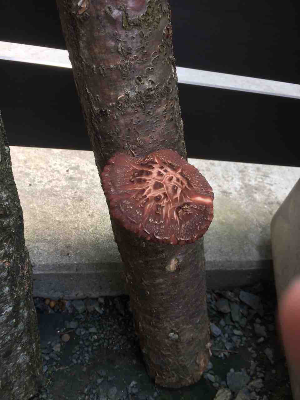 シイタケの菌を全面的に植え付けたのに、他の怪しい菌に負けしまったのか?