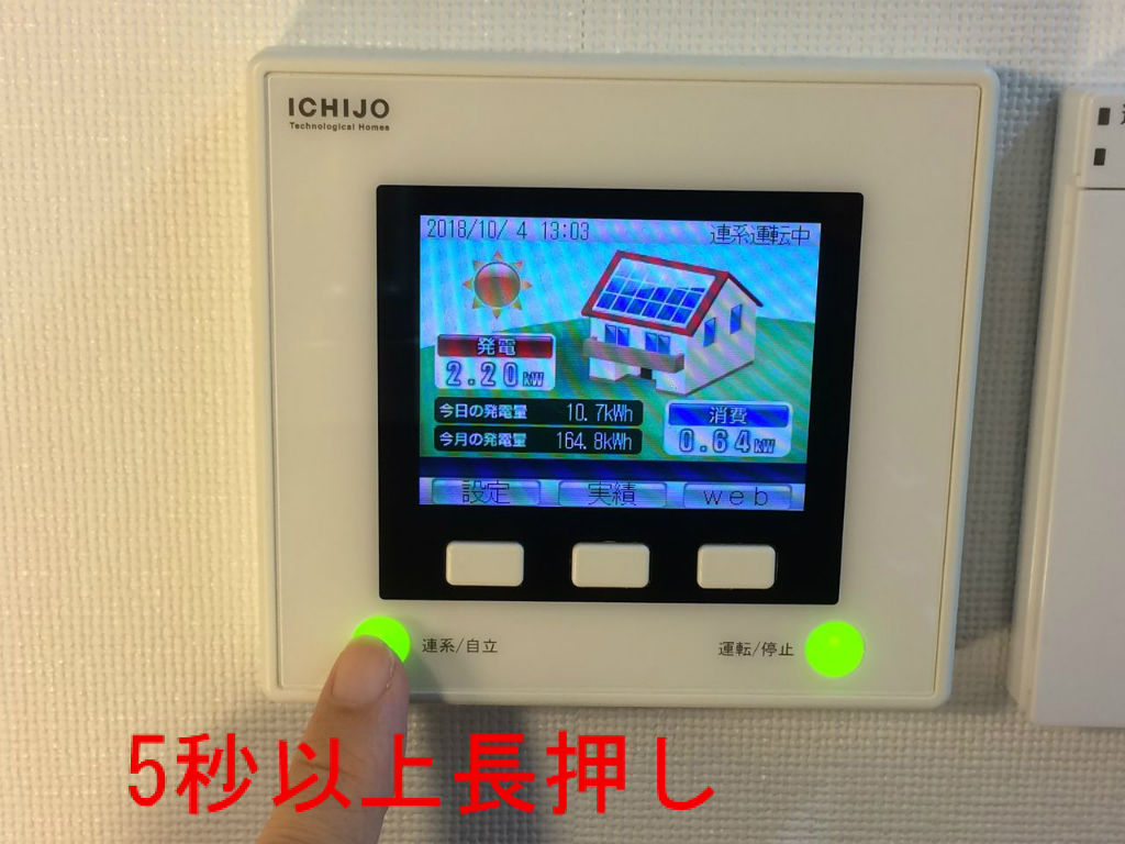 『連系/自立』ボタンを押します。5秒以上の長押しが必要です。