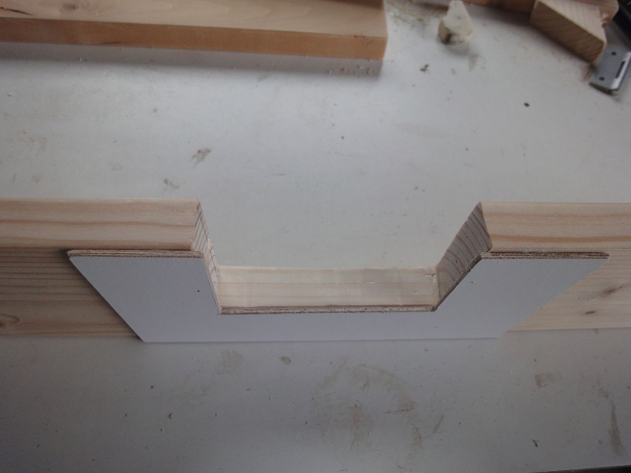 横板には、デジカメのレンズ部分がちょうど中央にくる位置に切り欠きを作り、裏側から薄い板を貼ってストッパーとしました。