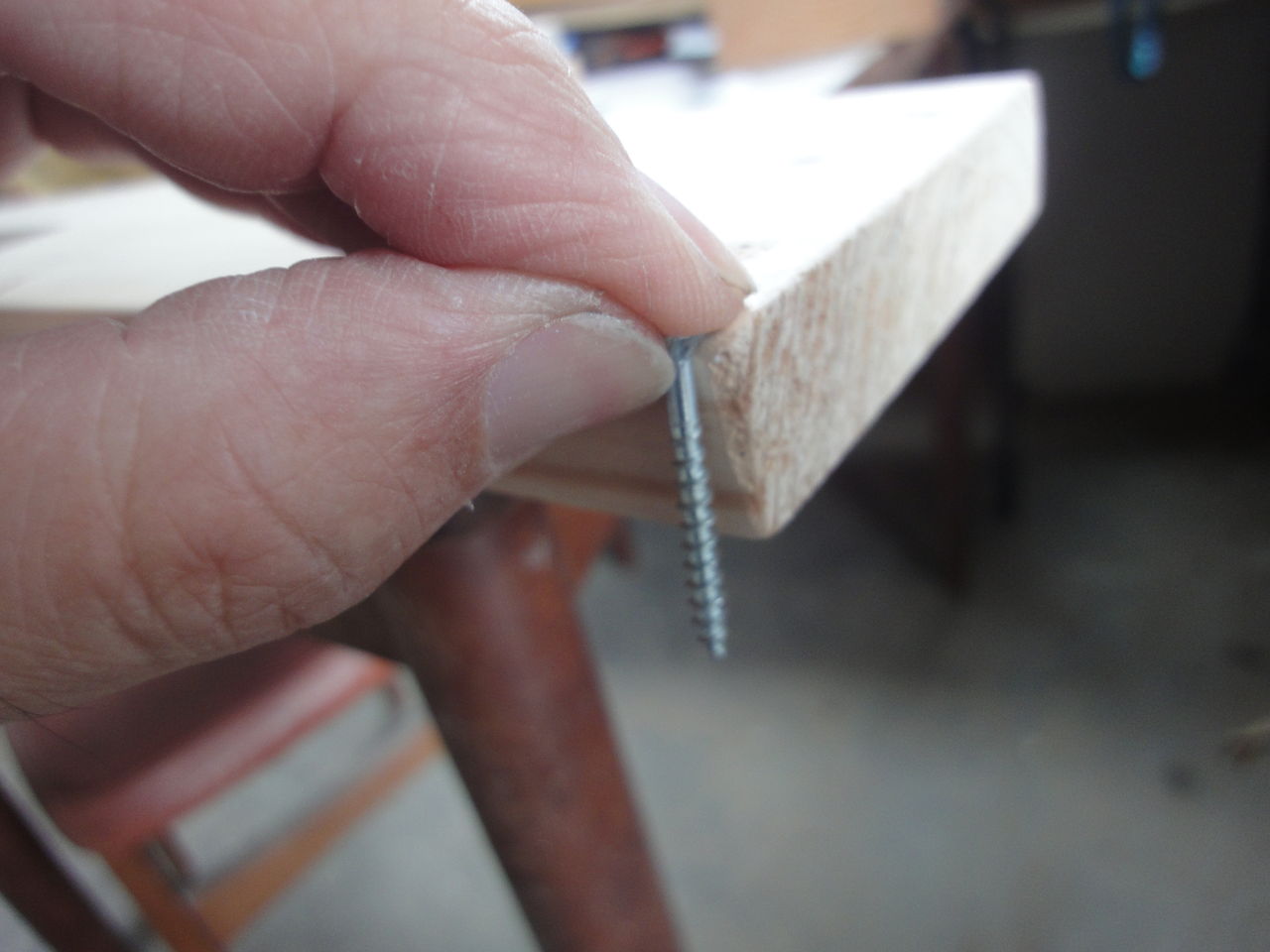 横板と柱をビス止めしようと思いましたが、手持ちのビスの長さがちょっと短いということで