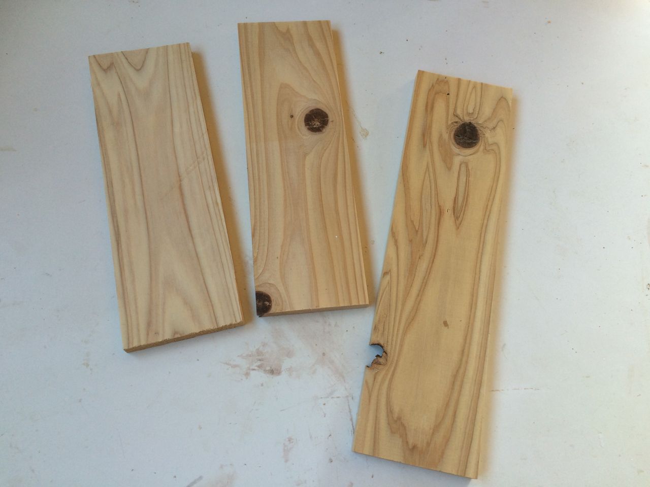 材料は絵本棚を作ったときと同じ杉板です。端材がいくらか残っていましたので再利用です。