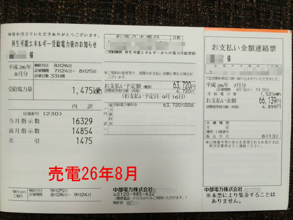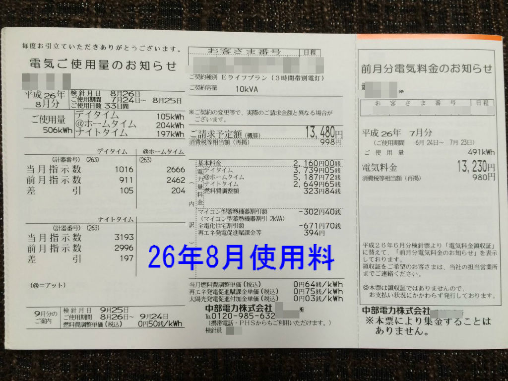 それでは平成28年8月分の電気明細です。