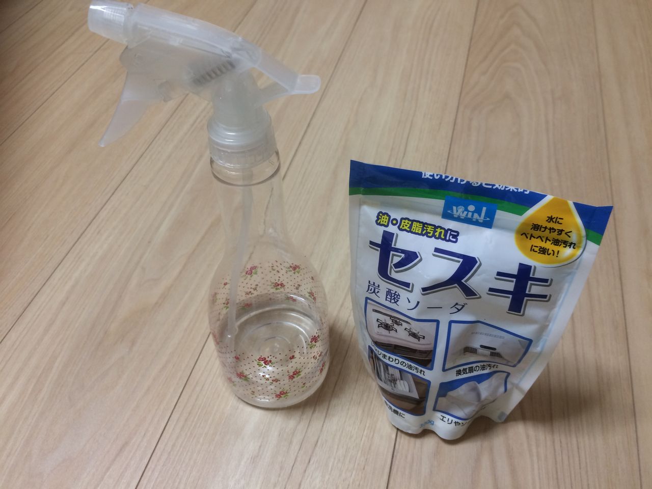 適当なスプレー容器に水とセスキを入れて溶かすだけです。