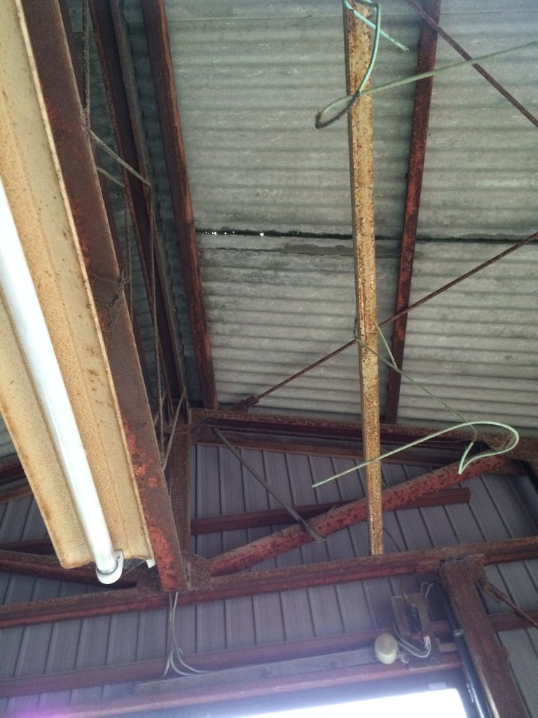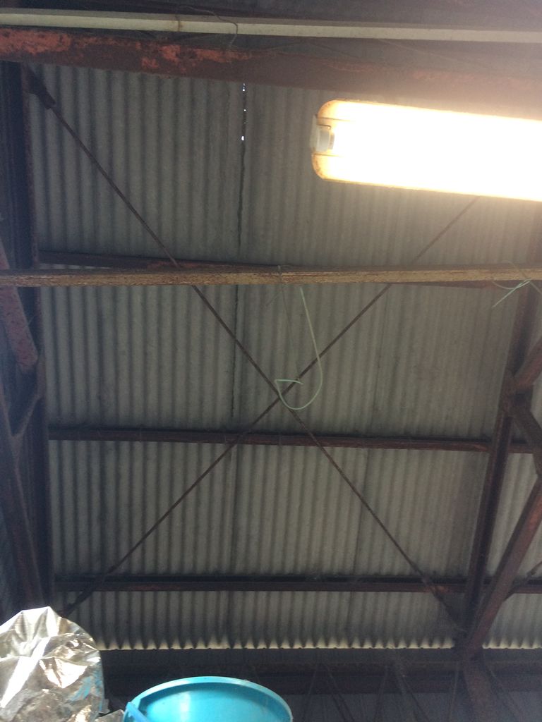 まずは、今回直したいのはこの屋根の穴です。明かりがもれています。明らかに穴が開いています。