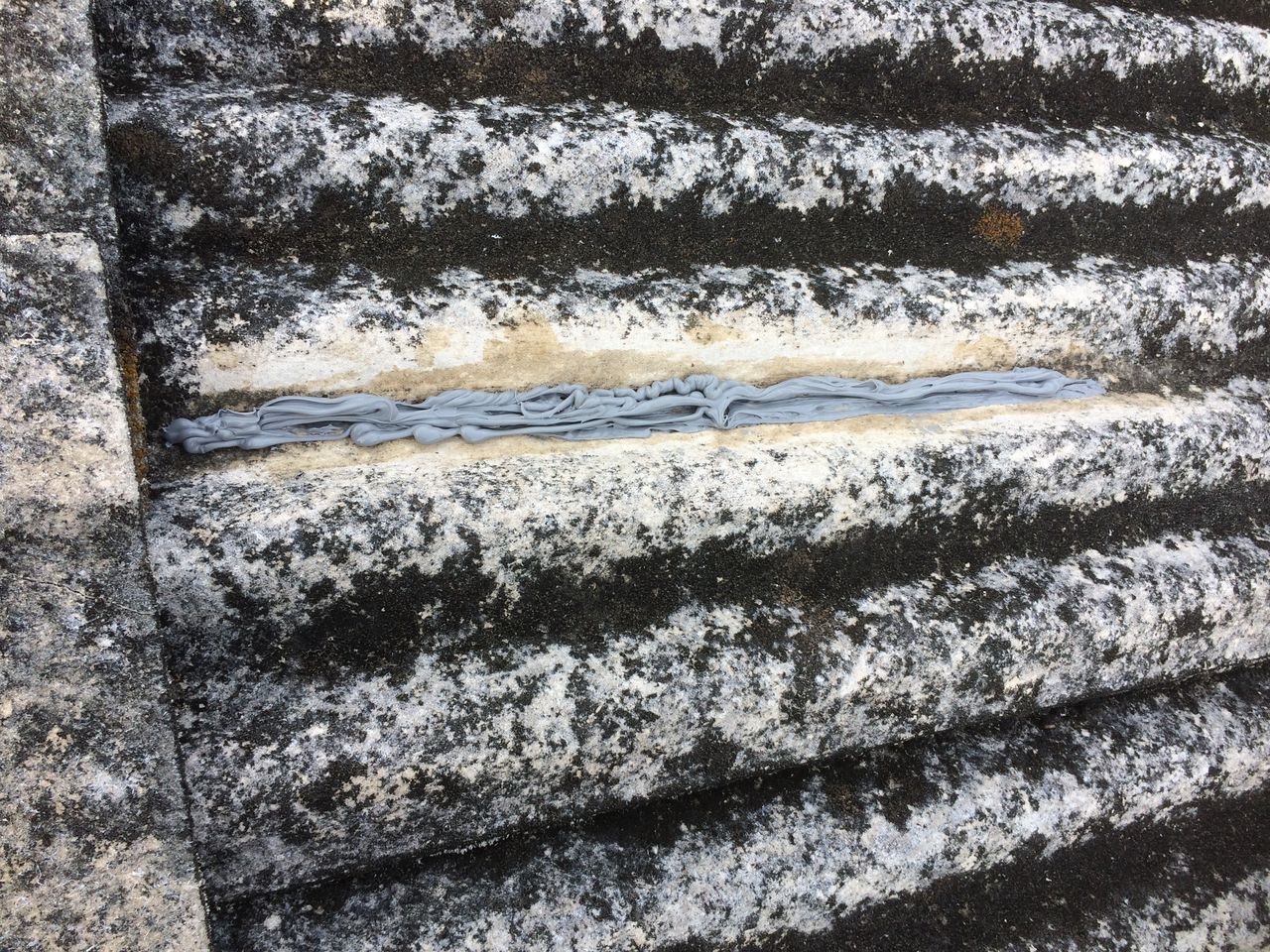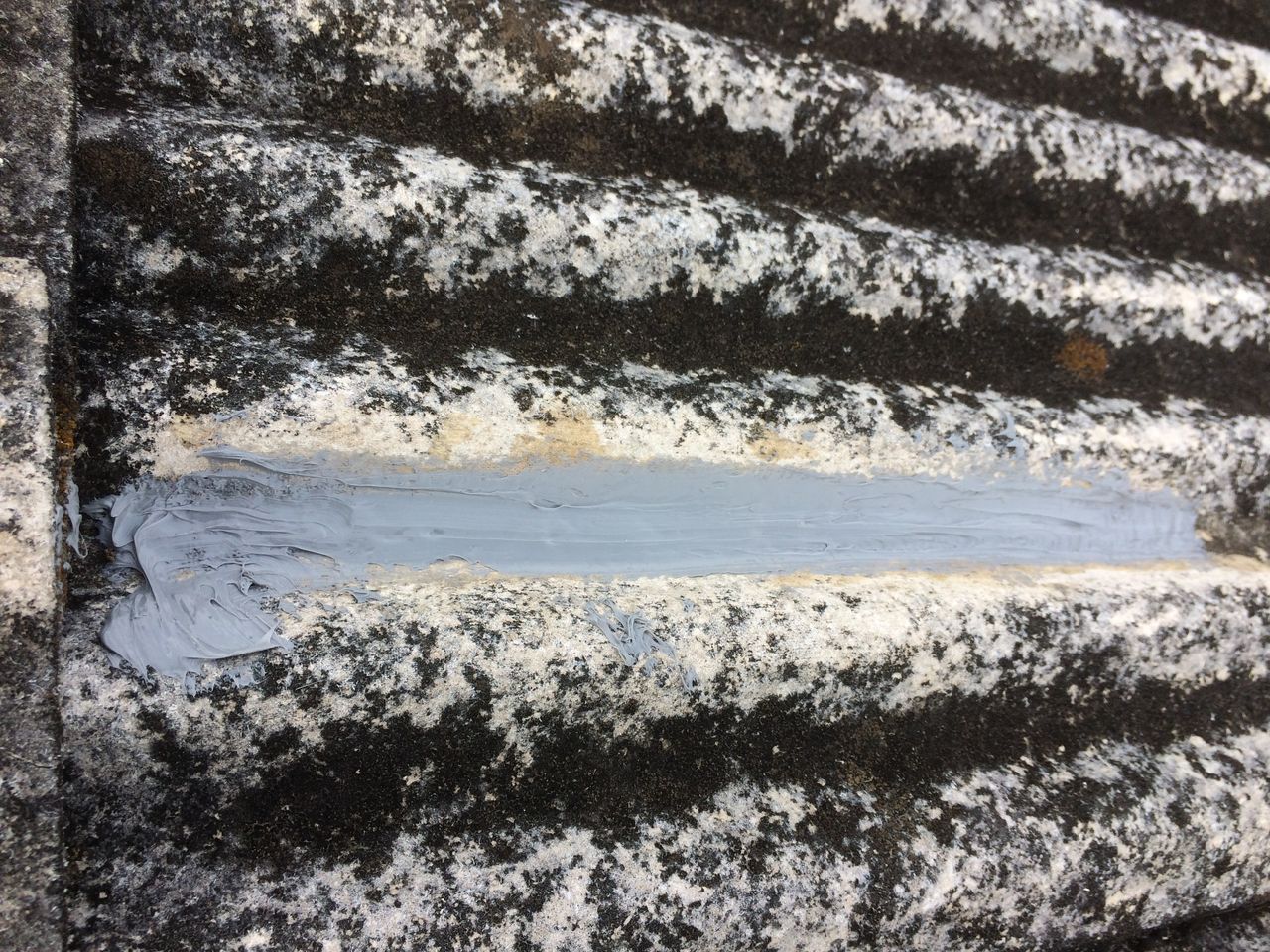 この作業中に他の箇所の屋根材が割れ、そこもガレージの内側から見上げると光が透ける状態に。