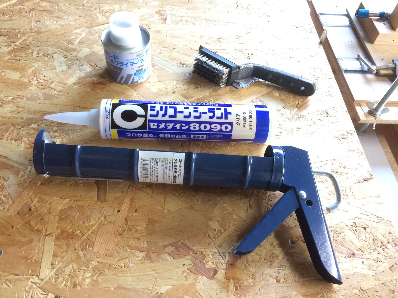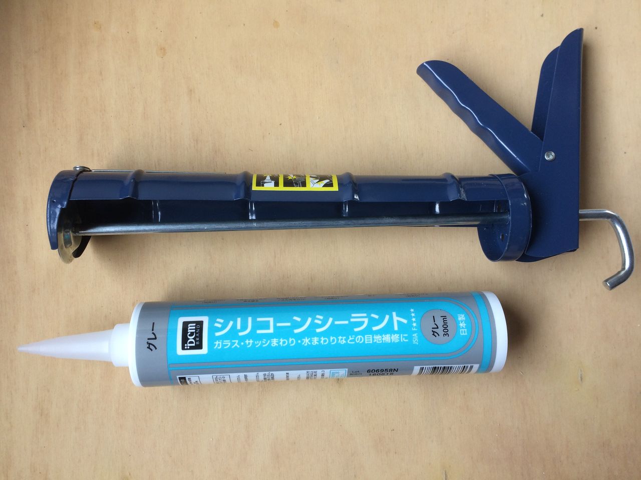 当初用意していたシーリング剤。実は旧よっち邸の時に何かの用で買ったものの結局使わなかったシロモノ。