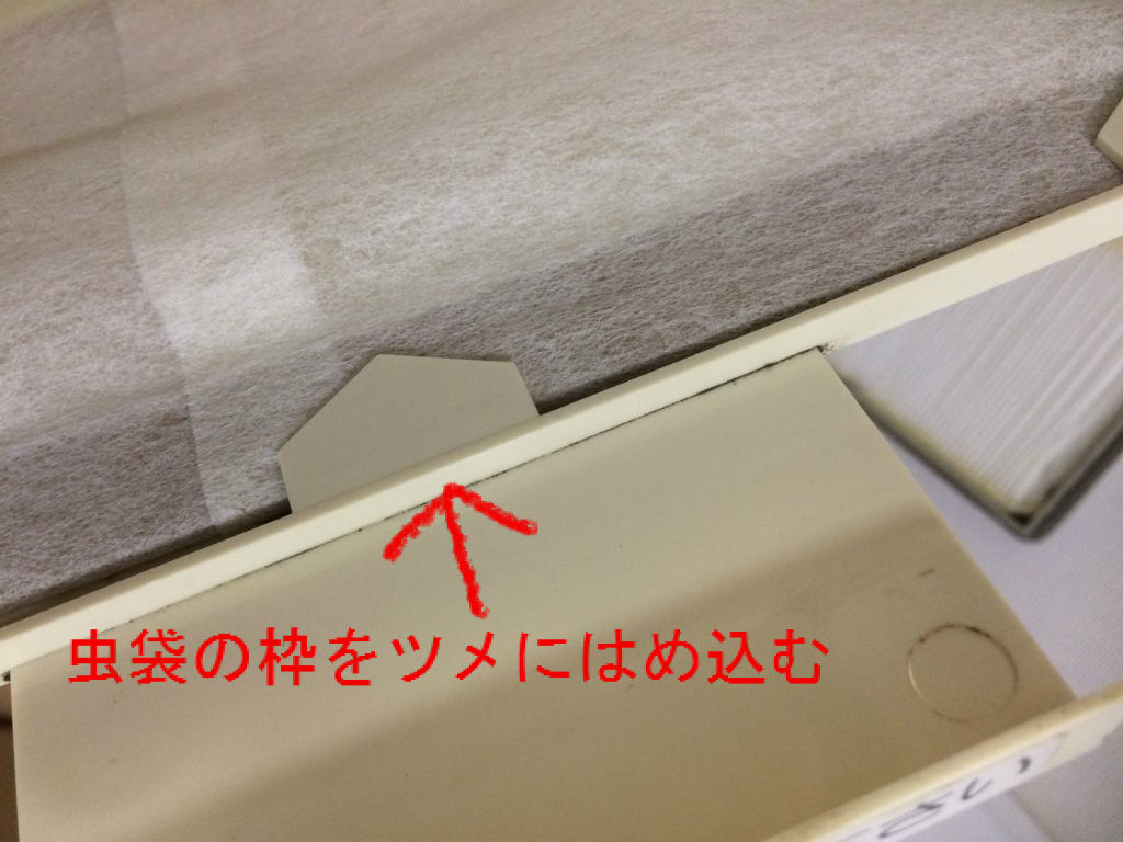 外した虫袋は速攻でゴミ袋に捨て、新しいのをはめます。