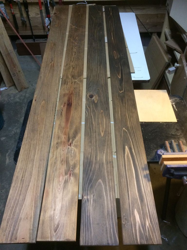 4本追加でサンディングし、今度はミディアムウォルナットを塗ってみました。